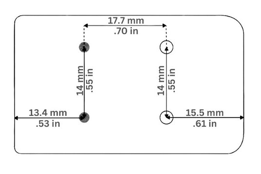 • έχει 2 τρύπες για βίδες στο κέντρο πίσω σε απόσταση 14mm η μία από την άλλη.