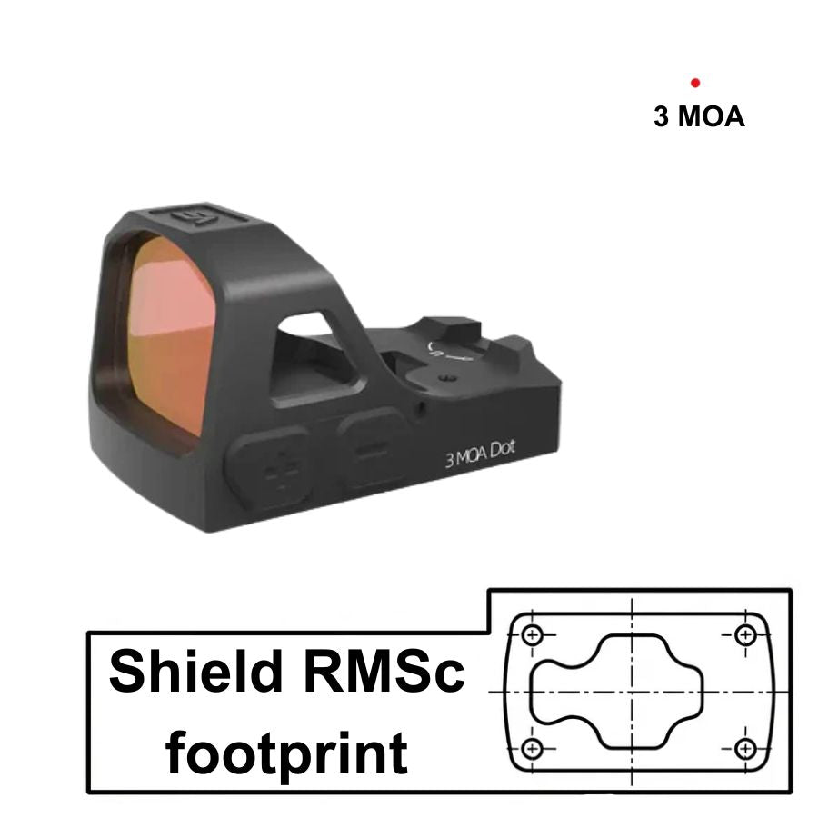 Αυτό το σκοπευτικό κόκκινης κουκκίδας χρησιμοποιεί το πρότυπο footprint Shield RMSc.