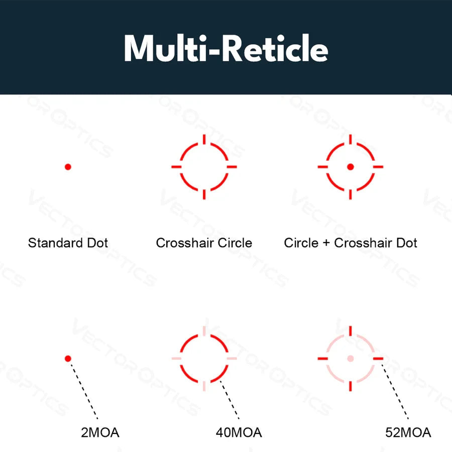 Προσφέρει επίσης τρία επιλεγόμενα σκοπευτικά, αισθητήρα κίνησης (αυτόματη απενεργοποίηση μετά από 2 λεπτά αδράνειας, και ενεργοποιείται ξανά μόλις μετακινηθεί το οπτικό), και συνολικά δέκα ρυθμίσεις φωτεινότητας (συμπεριλαμβανομένων 2 επιπέδων για νυχτερινή όραση).